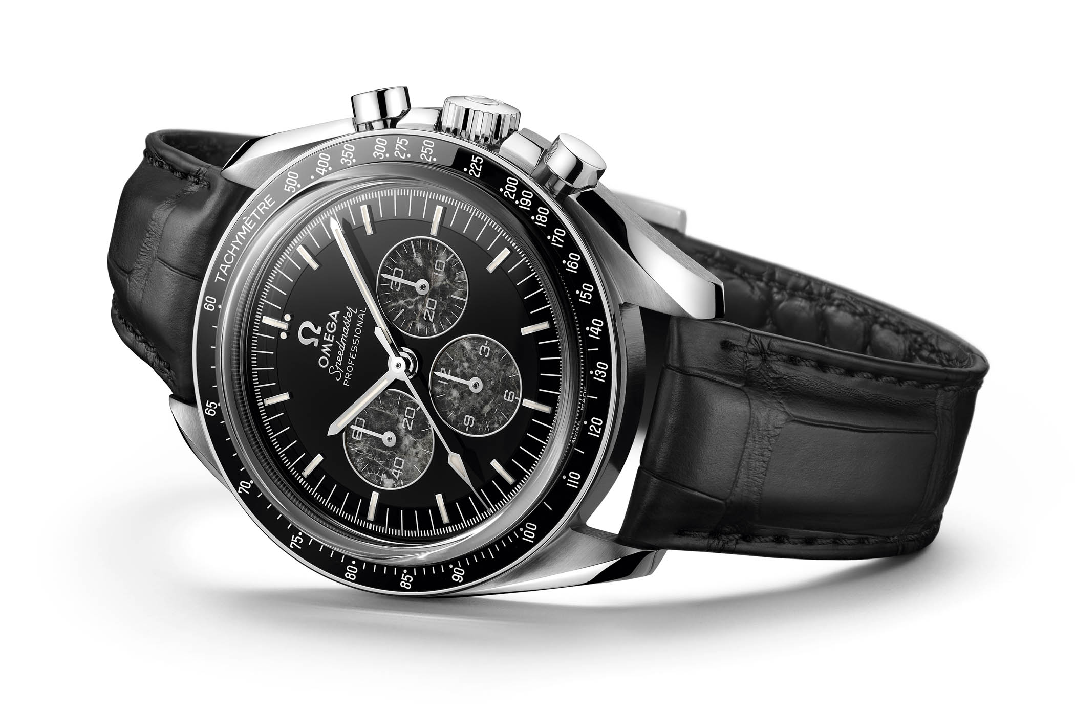 Чтобы соответствовать теме «Посадка на Луну», Omega Speedmaster Moonwatch 321 Platinum оснащен превосходным черным полированным циферблатом из оникса, на котором вы увидите стрелки из 18-каратного белого золота и прикладные индексы - все они заполнены Super-LumiNova. Три вспомогательных счетчика сделаны из метеорита - и, чтобы полностью соответствовать теме, Омега использовал настоящие кусочки лунного метеорита. Логотип Омега на 12 часов. Омега здесь полностью воссоздает механизм 1:1, без использования современных технологий - без коаксиального сигнала, без мастер-хронометра. Как и в оригинальном механизме, «новый» калибр 321 работает медленно при 18 000 об / мин и покрыт позолотой. Это видно через заднюю крышку сапфира. Omega Speedmaster Moonwatch 321 Platinum носится на черном ремешке из кожи аллигатора с платиновой пряжкой. Что касается доступности, Omega не упоминает про ограниченную серию. Тем не менее, когда 321 был вновь представлен, бренд заявил, что в год будет производиться не более 2000 механизмов. Производство останется довольно эксклюзивным.