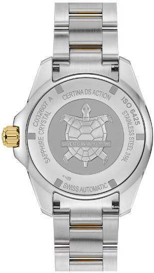 В XXI-м веке к часам предъявляются высокие требования. Дорогие наручные часы должны быть лучшими во всех отношениях – с точки зрения стиля, надежности и точности хода. Новая модель популярной коллекции DS Action Diver швейцарской марки Certina несомненно станет победителем этой гонки. Дайверские часы диаметром 43 мм отличаются классическим вневременным дизайном, водонепроницаемостью до 300 м и современным автоматическим калибром с пружиной, обладающей антимагнитными свойствами. Для корпуса, браслетов и застежек своих часов марка Certina использует нержавеющую сталь 316L, отличающуюся повышенной износостойкостью, устойчивостью к коррозии и гигиеничностью. В стали содержится совсем небольшое количество никеля, поэтому этот материал не вызывает аллергии при носке. Керамика, используемая в часовом искусстве, обжигается при температуре более 900 °C, что обеспечивает ее высокую прочность. Керамические безели, кабюшоны и детали браслетов марки Certina имеют не только красивый внешний вид, но обладают устойчивостью к царапинам, гипоаллергенностью и способностью долгое время сохранять первоначальную яркость и блеск. Super-LumiNova (SLN) представляет собой cветящийся материал с фосфоресцирующими свойствами. В темноте SLN типа BG W9, который использует Certina, испускает свет в виде голубого мерцания. SLN не вредит здоровью и используется для нанесения на стрелки, индексы и безели. В темноте он через некоторое время теряет свои фосфоресцирующие свойства, но они автоматически восстанавливаются на свету. Сапфировое стекло состоит из порошка оксида алюминия (Al2O3), раскаленного до 2.000 °C. Получаемые в результате сапфировые пласты нарезаются на тонкие пластины, им придают требуемую форму и полируют. Сапфир абсолютно прозрачен, обладает высокой устойчивостью к царапинам и механическим повреждениям. По этим причинам сапфировое стекло стало неотъемлемой деталью концепции DS и используется во всех моделях Certina для защиты циферблата. Вес нетто 205 гр. Стекло сапфировое сдносторонним антибликовым покрытием. Водонепроницаемость до 300 метров. Часы для дайверов, разработанные в соответствии со стандартом ISO 6425:2018, водонепроницаемость до глубины 300 м . Диаметр корпуса 43 мм. Толщина 13.1 мм. Между креплениями 21 мм. Механизм ETA POWERMATIC 80.611 с запасом хода 80 часов и сплавом Nivachron. Запас хода показывает количество времени, которое могут идти механические часы без подзавода. Большинство часов имеют запас хода около 38-42 часов. Powermatic 80, инновационный автоматический калибр Certina имеет запас хода до 80 часов – почти в два раза больше, чем у сопоставимых моделей. Спирали баланса созданы из инновационного титанового сплава. Этот революционный материал был создан при сотрудничестве с компанией Swatch Group и используется лишь ограниченным числом брендов. Пружины Nivachron обладают повышенной устойчивостью к воздействию электромагнитных полей, ударам, старению материалов, экстремальному перепаду температур, выводят часы на совершенно новый уровень точности и обеспечивают долговечность аксессуара. Удлинение для надевания часов на гидрокостюм.