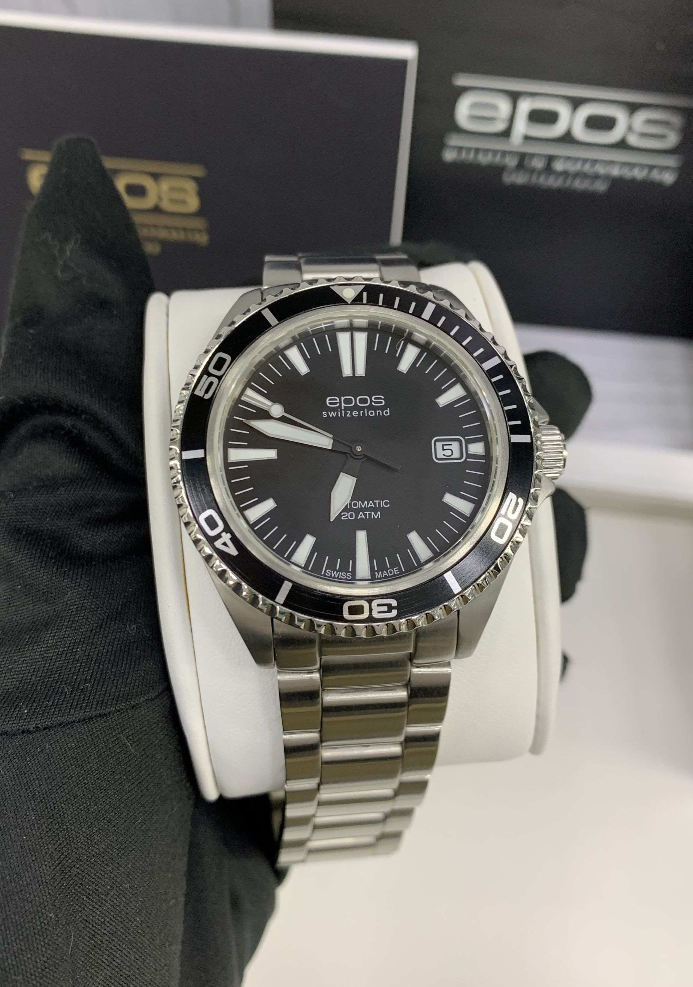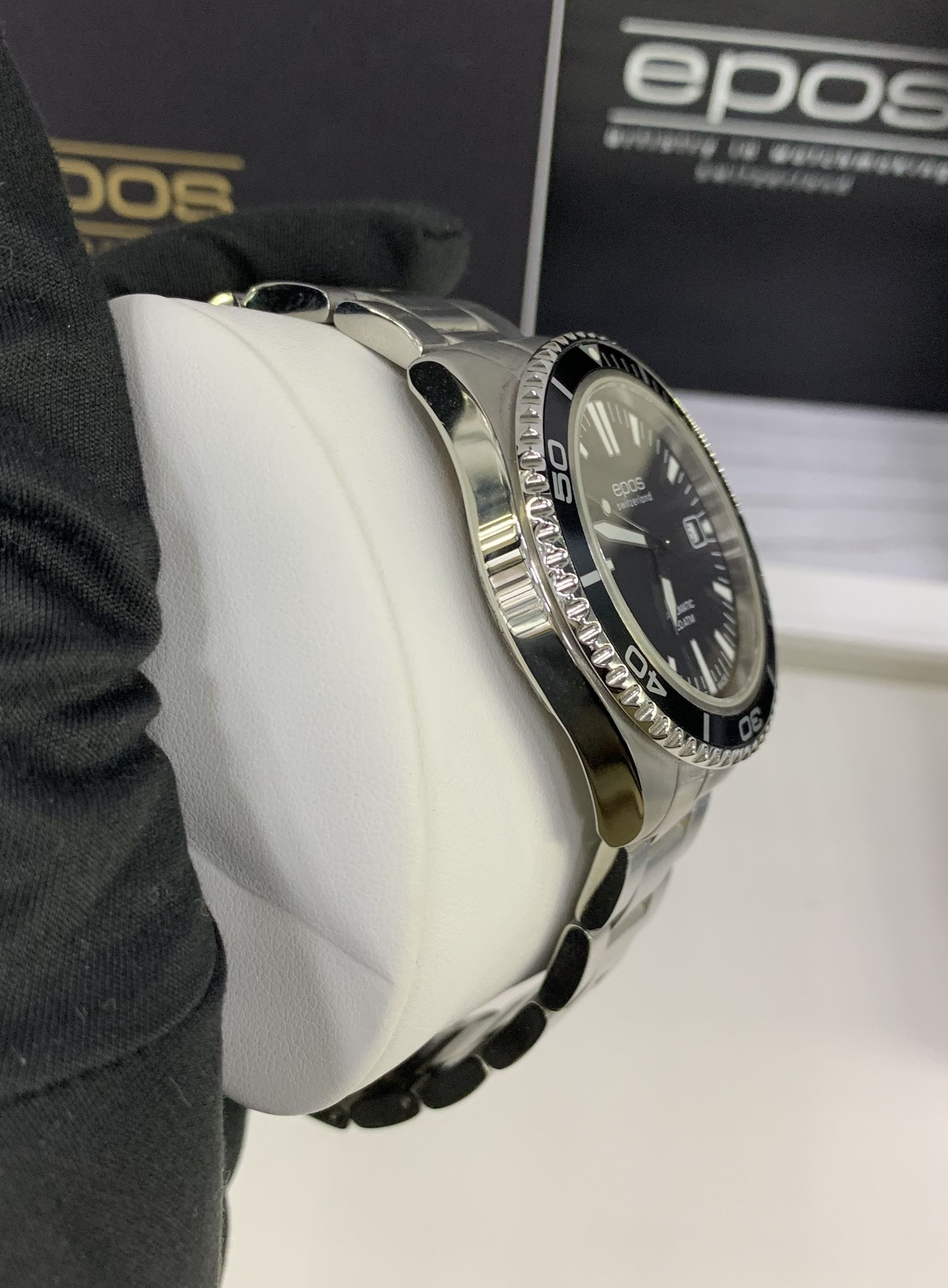 Швейцарские механические мужские наручные часы с автоподзаводом Epos 3413.131.20.15.30 на стальном браслете. Корпус часов из нержавеющей стали. Диаметр корпуса 41 мм, толщина 10,8 мм. Циферблат круглой формы, чёрного цвета. Сапфировое стекло по прочности, уступающее только алмазу. Водозащита часов 200 метров. Окно даты.